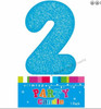 CAKE CANDLE NUMBER 2 GLITTER BLUE. - Size: approx. 9cm high including stick.