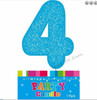 CAKE CANDLE NUMBER 4 GLITTER BLUE. - Size: approx. 9cm high including stick.
