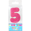 CAKE CANDLE NUMBER 5 GLITTER PINK. - Size: approx. 9cm high including stick.