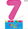 CAKE CANDLE NUMBER 7 GLITTER PINK. - Size: approx. 9cm high including stick.