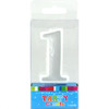 CAKE CANDLE NUMBER 1 SILVER. - Size: approx. 9cm high including stick.