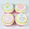 Adorable baby decorations for your cakes, cupcakes and cookies. This cutter has 4 motifs including a crawling baby, a stork, a baby in a blanket and a baby in a pram