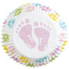 Wilton Footprink patterned baking cups. 75 per package. Decorating and baking is a snap with these footprint themed baking cups. These baking cups have a colourful pastel look making for a truly aesthetic piece perfect for a baby shower